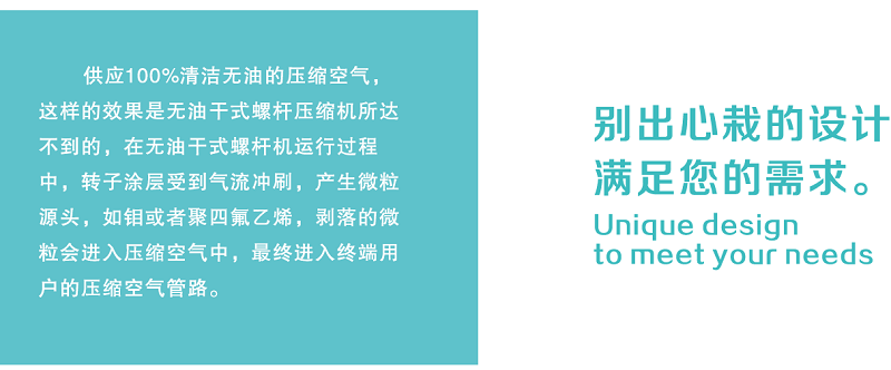 無油水潤滑螺桿空壓機,包含單螺桿和雙螺桿壓縮技術,實現0無油,維護費用低